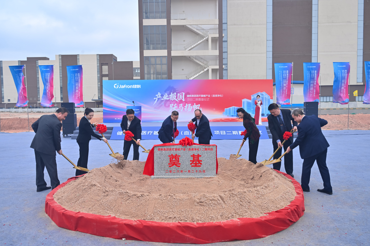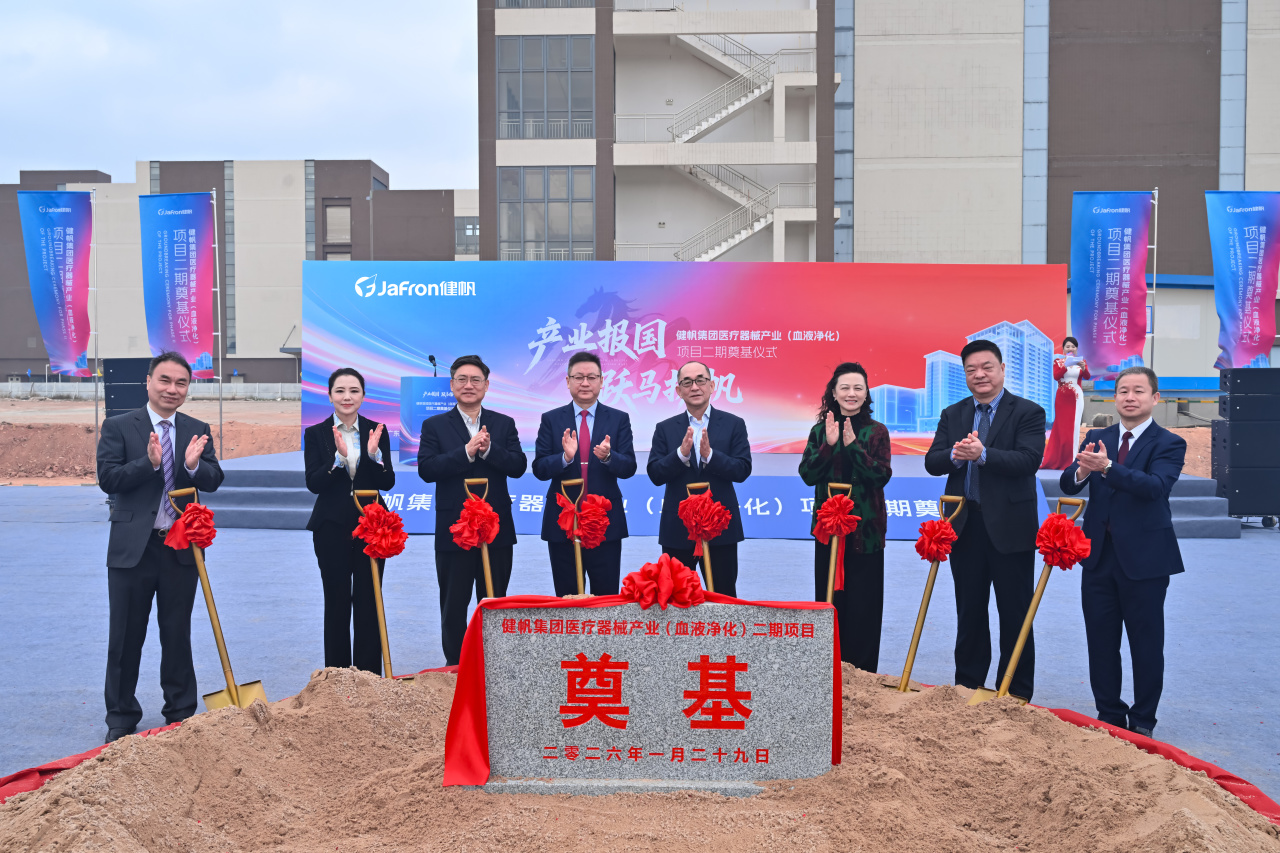 2026年1月29日,“产业报国 跃马扬帆”健帆集团医疗器械产业(血液净化)项目(以下简称“金鼎产业园”)二期奠基仪式隆重举行。作为园区整体建设的关键一环,二期工程的启动标志着这座世上规模最大、技术领先的血液净化医疗设备及耗材生产基地进入全新阶段,将推动中国血液净化产业迈入高质量发展的全新时代。