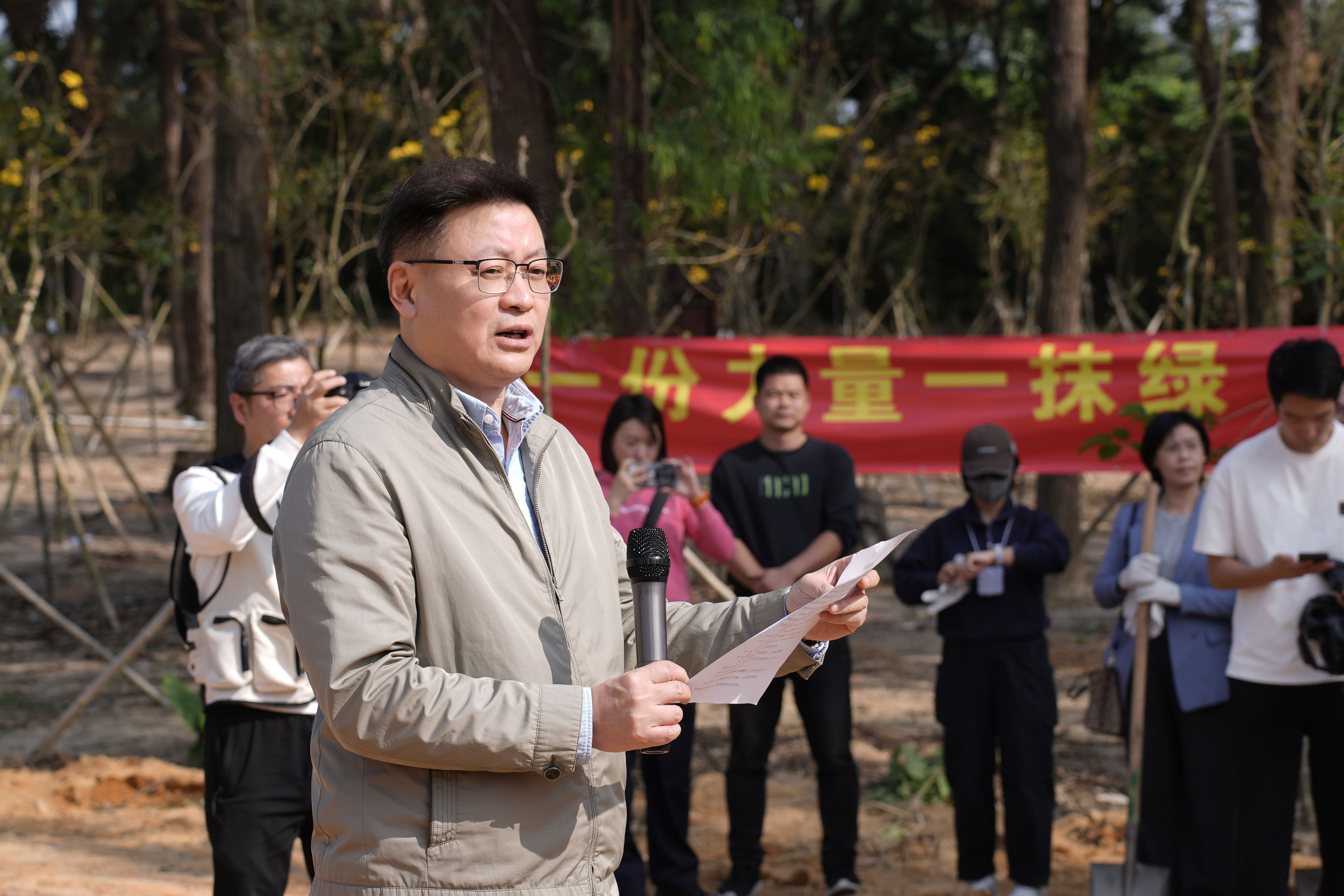 市工商联主席、健帆集团董事长董凡现场宣读《绿美倡议书》,号召全市民营企业争当绿美珠海的“先行者、奉献者、参与者、共建者、宣传者”——弘扬“岳山造林”精神,通过捐资认养、员工志愿行动投身植树护绿,合力打造“民企主题林”,探索绿色产业新业态,讲好民企绿美故事,让“绿美珠海”成为大湾区靓丽名片。